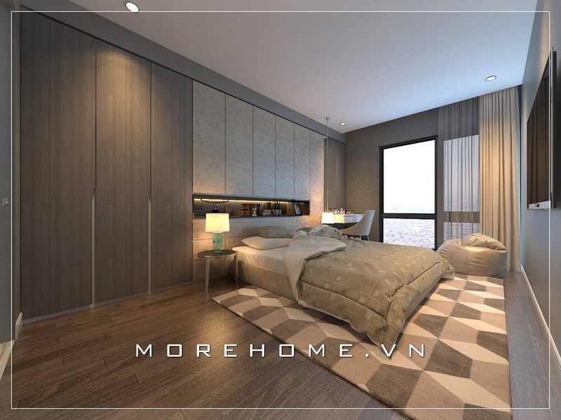 Thiết kế tủ quần áo hiện đại âm tường mang lại cho phòng ngủ chung cư nhỏ thêm rộng rãi hơn