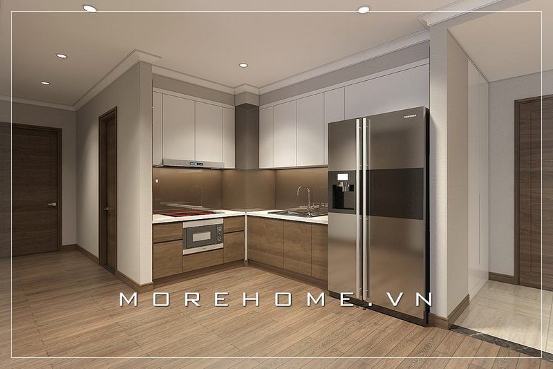 Thiết kế nội thất phòng bếp chung cư hiện đại, đơn giản