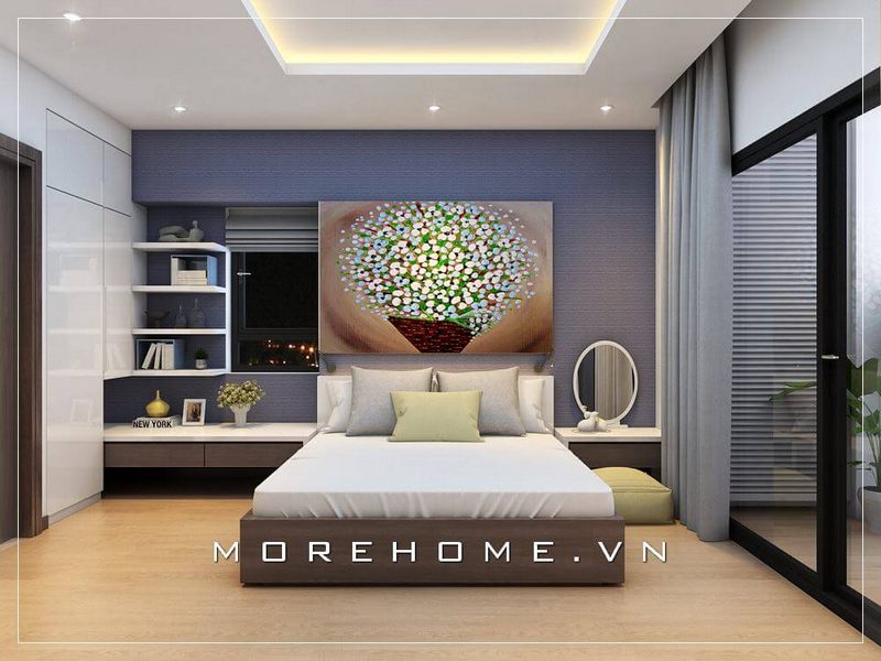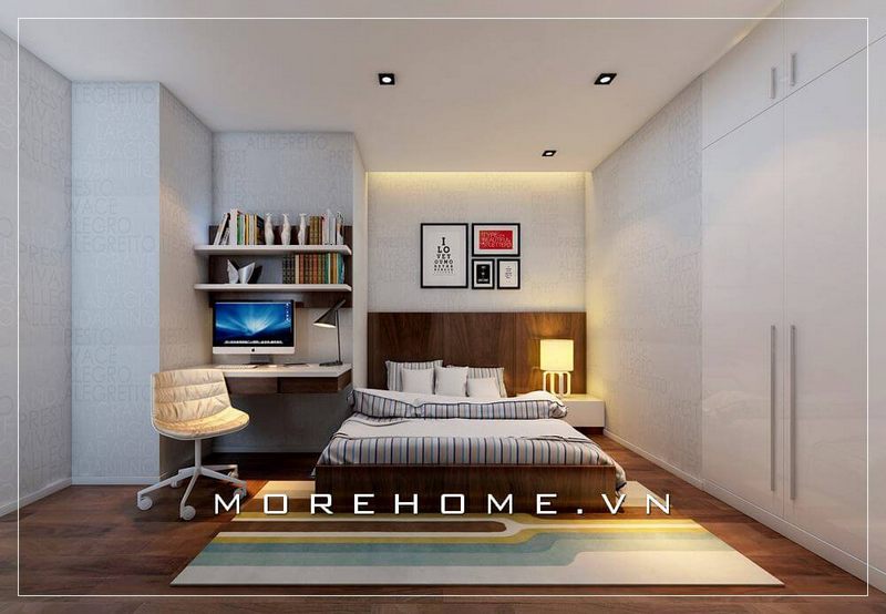 Kết hợp hài hòa của các gam màu chủ đạo cùng sự bố trí nội thất khoa học ngăn nắp mang lại căn phòng ngủ chung cư thoải mái và tiện nghi