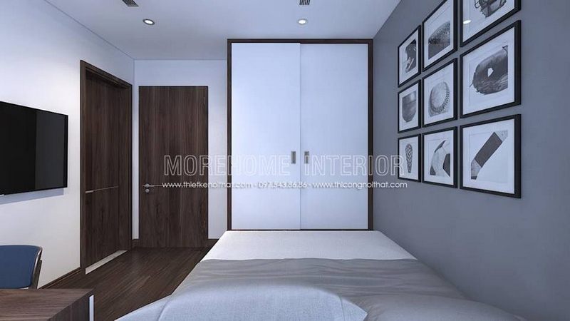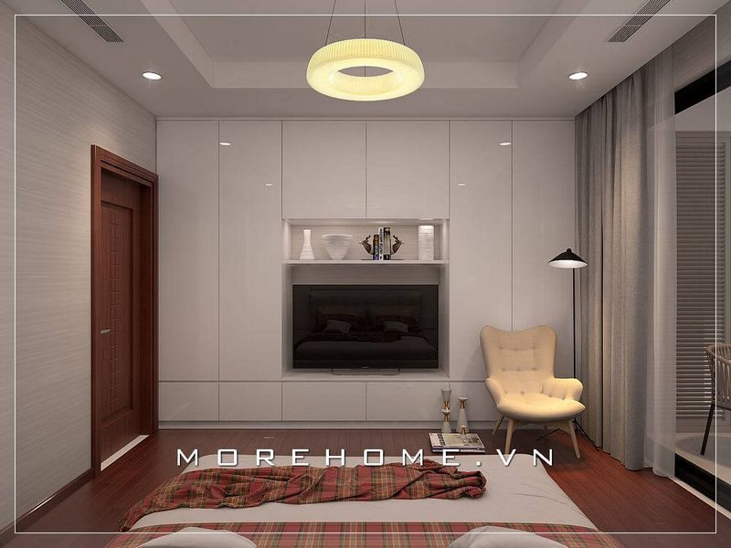 Thiết kế nội thất phòng ngủ phong cách hiện đại nhẹ nhàng với gam màu đơn sắc nhẹ nhàng.