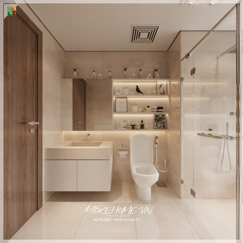 Với diện tích phòng tắm căn hộ nhà phố, biệt thự cách bố trí nội thất cho hợp lí để không mang tới cảm giác bí bách và đáp ứng được yếu tố về sự tiện nghi.