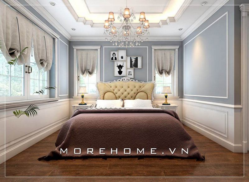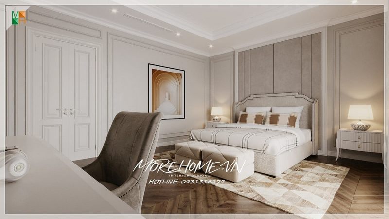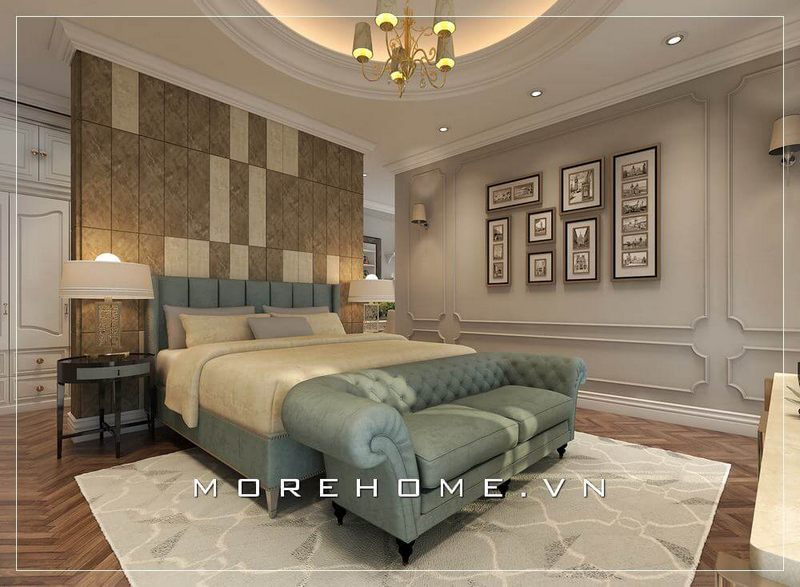 Nội thất phòng ngủ Master sang trọng, các đường nét tân cổ điển chạm trổ tinh tế thu hút bất cứ một ánh nhìn nào
