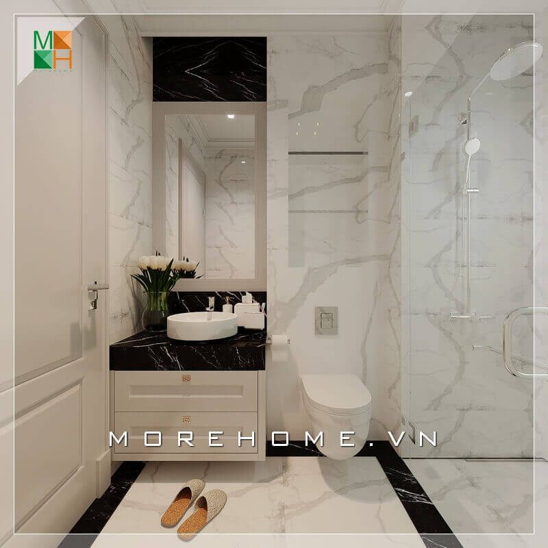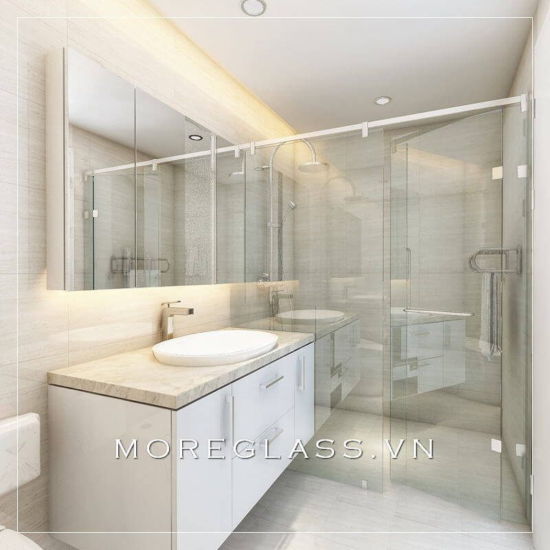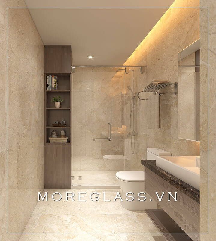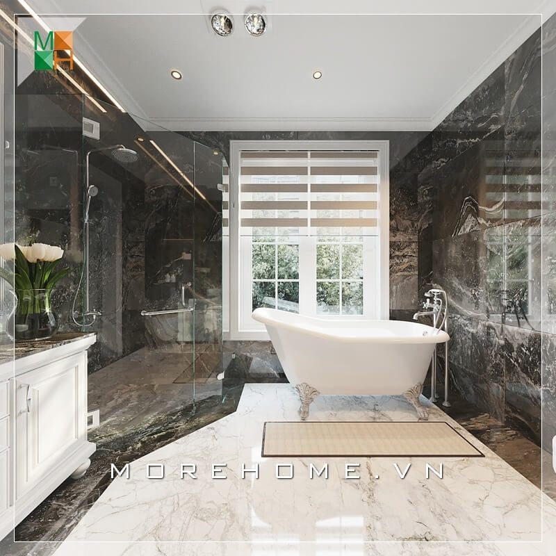 Khi sử dụng vách kính ngăn hiện đại và đá ốp cao cấp, phòng tắm biệt thự, nhà phố sẽ trở nên đẹp, ấn tượng và sang trọng hơn.